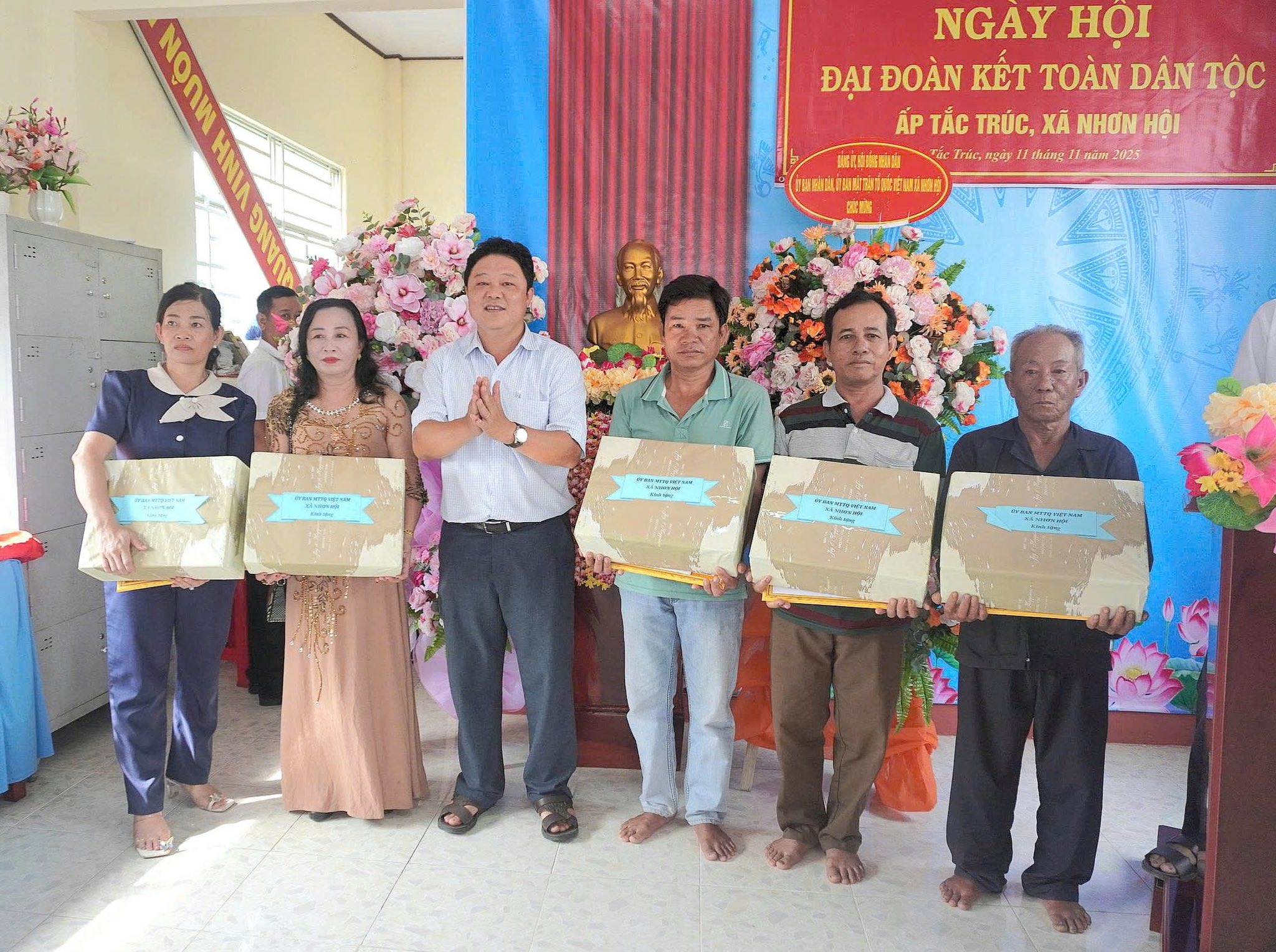 Dịp này, UBND xã Nhơn Hội đã khen thưởng 5 cá nhân có thành tích tiêu biểu trong thực hiện Cuộc vận động “Toàn dân đoàn kết xây dựng nông thôn mới, đô thị văn minh” năm 2025; đồng thời trao tặng 5 phần quà cho gia đình chính sách, hộ nghèo và hộ đặc biệt khó khăn từ nguồn Quỹ Vì người nghèo của xã.