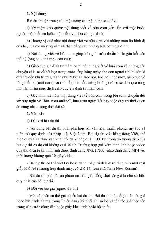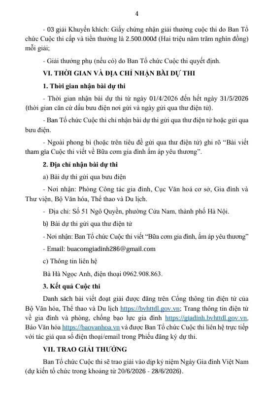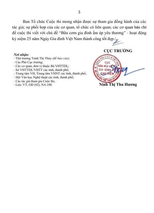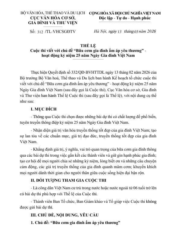 Cuộc thi viết với chủ đề “Bữa cơm gia đình ấm áp yêu thương” - hoạt động kỷ niệm 25 năm Ngày Gia đình Việt Nam.