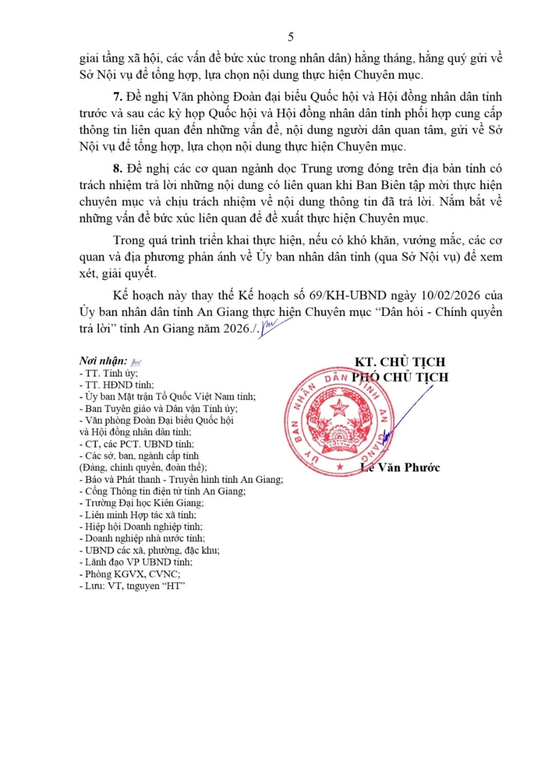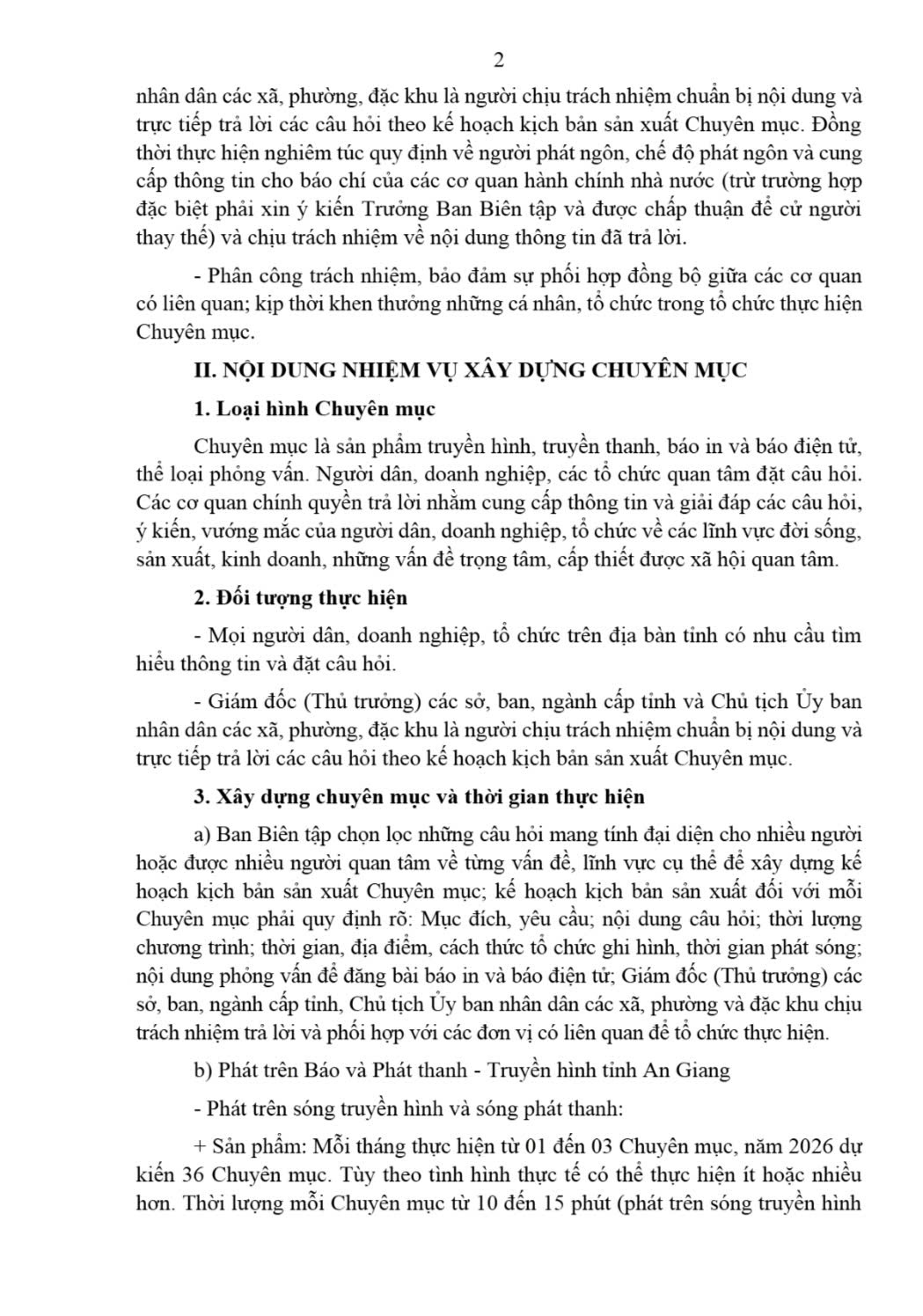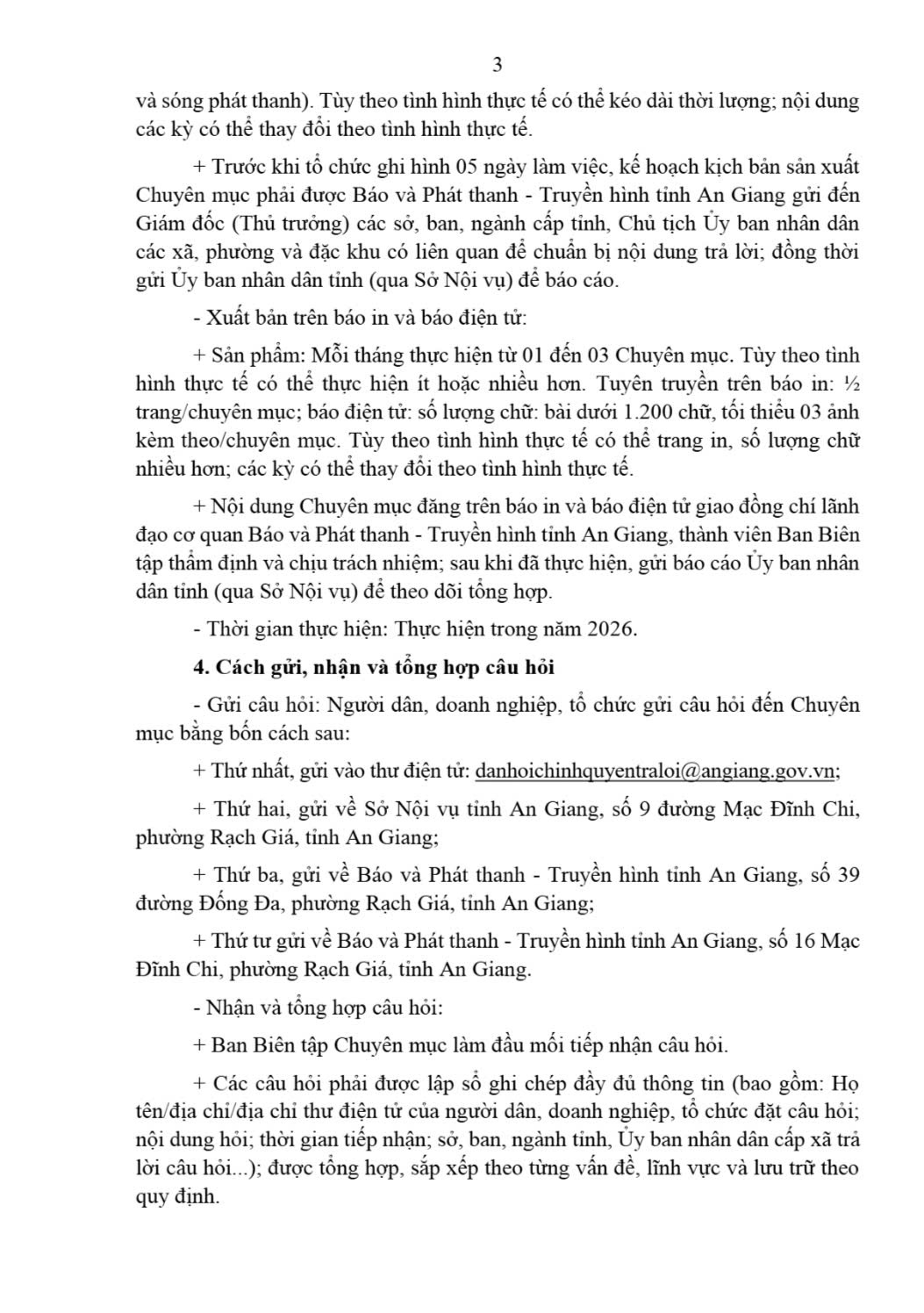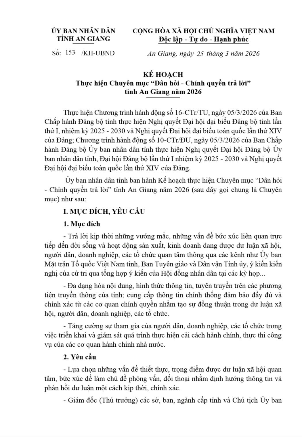 Kế hoạch thực hiện Chuyên mục "Dân hỏi - Chính quyền trả lời" tỉnh An Giang năm 2026