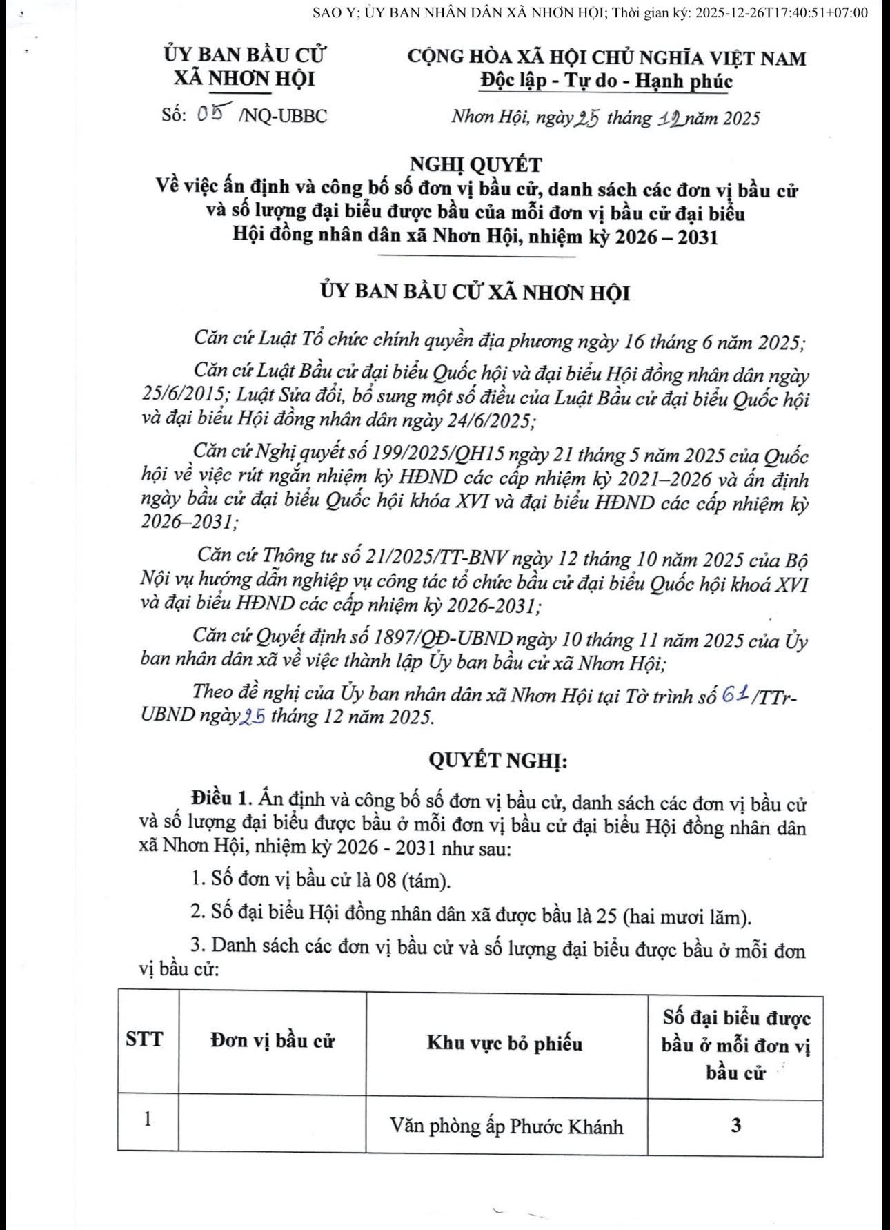 NGHỊ QUYẾT CỦA ỦY BAN BẦU CỬ XÃ NHƠN HỘI