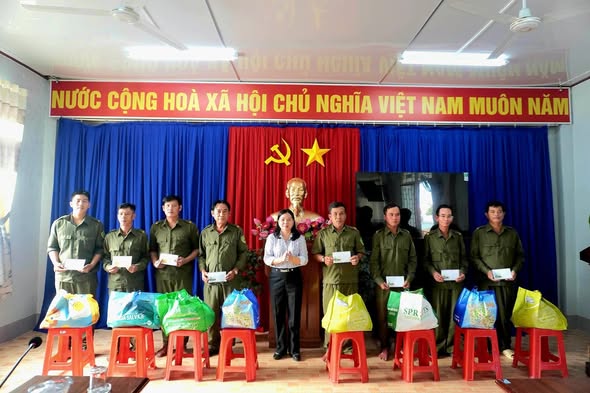 Nhân dịp này, Phó Bí thư Đảng ủy, Chủ tịch UBND xã Nguyễn Thị Phướng đã trao tặng quà Tết và gửi lời chúc mừng năm mới đến toàn thể lực lượng tham gia bảo vệ an ninh trật tự ở cơ sở cùng gia đình đón Tết Nguyên đán Bính Ngọ 2026 vui tươi, đầm ấm, bình an và hạnh phúc; đồng thời mong muốn lực lượng tiếp tục phát huy tinh thần đoàn kết, trách nhiệm, hoàn thành tốt nhiệm vụ được giao trong năm mới.