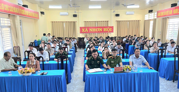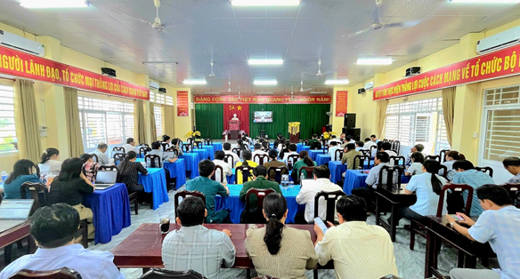 Các đại biểu dự hội nghị trực tuyến tại điểm cầu xã Nhơn Hội
