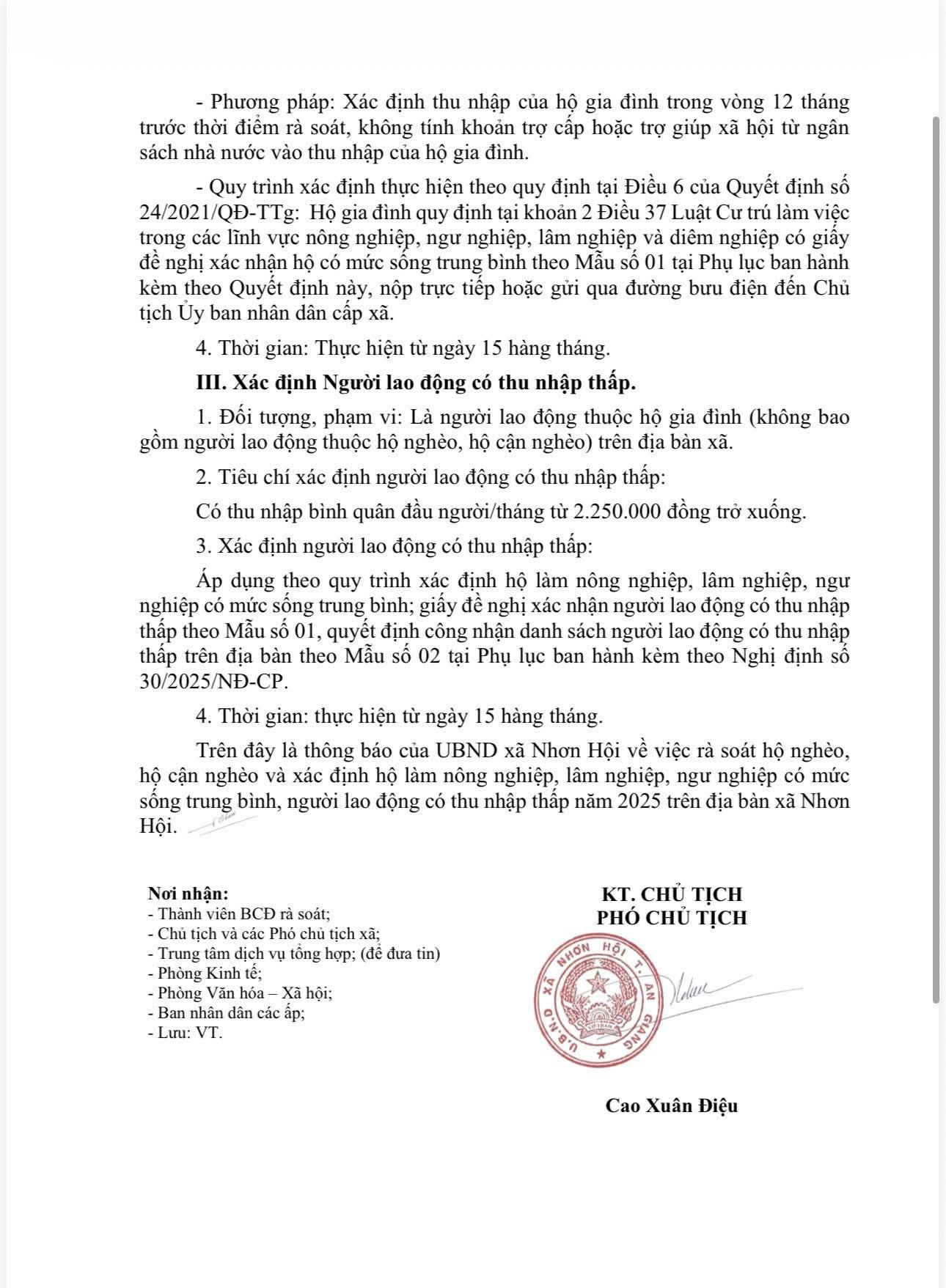 Thông báo rà soát hộ nghèo, hộ cận nghèo và xác định hộ làm nông nghiệp, lâm nghiệp, ngư nghiệp có mức sống trung bình, người lao động có thu nhập thấp năm 2025