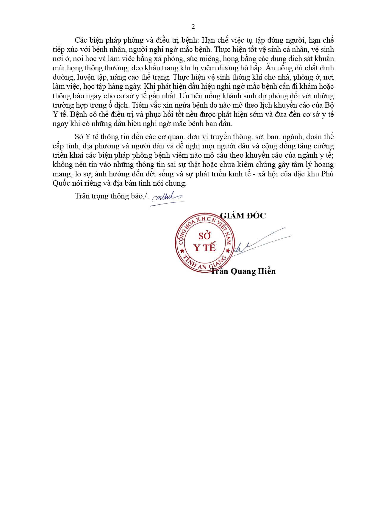 THÔNG CÁO BÁO CHÍ VỀ TRƯỜNG HỢP MẮC VIÊM NÃO MÔ CẦU