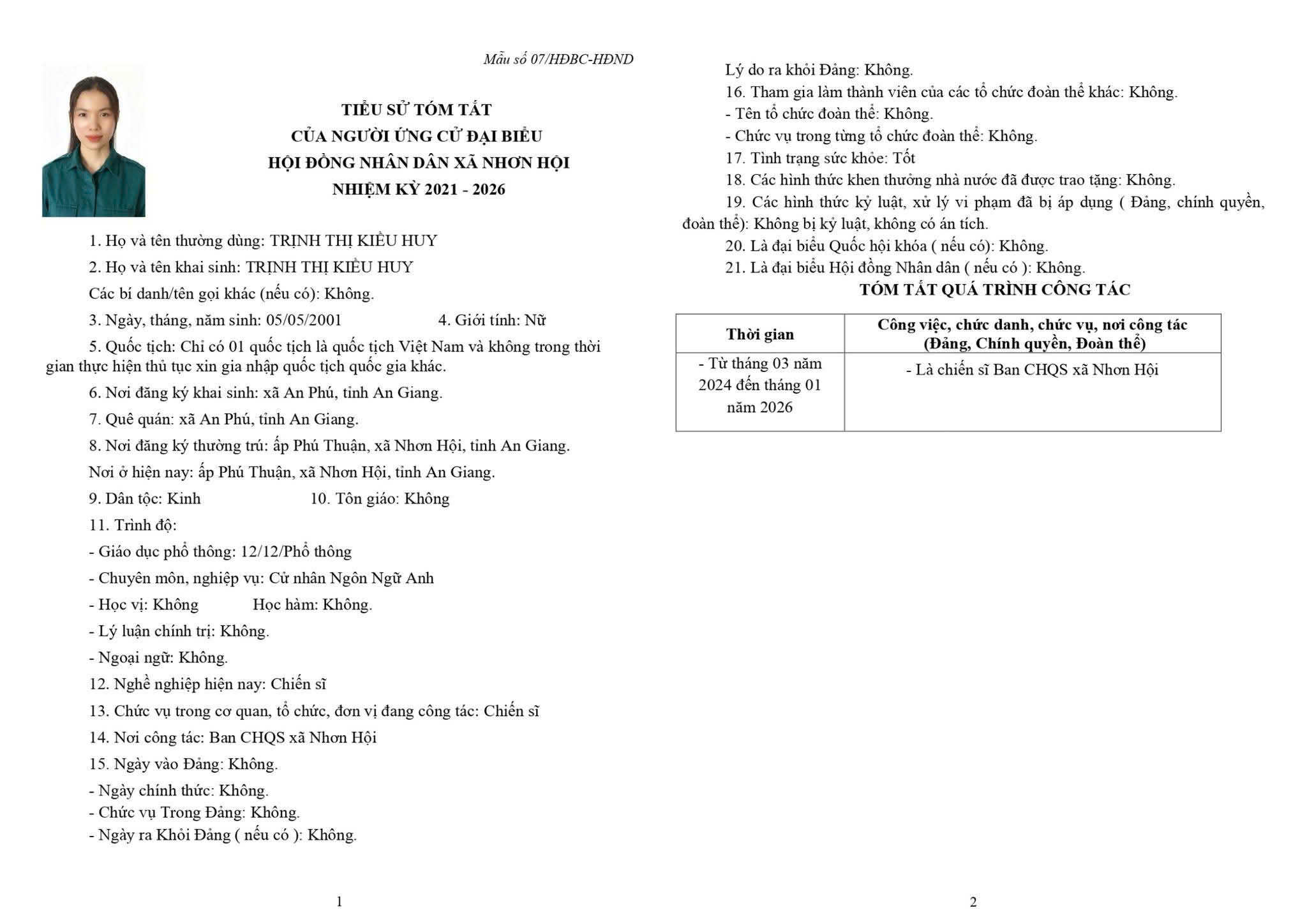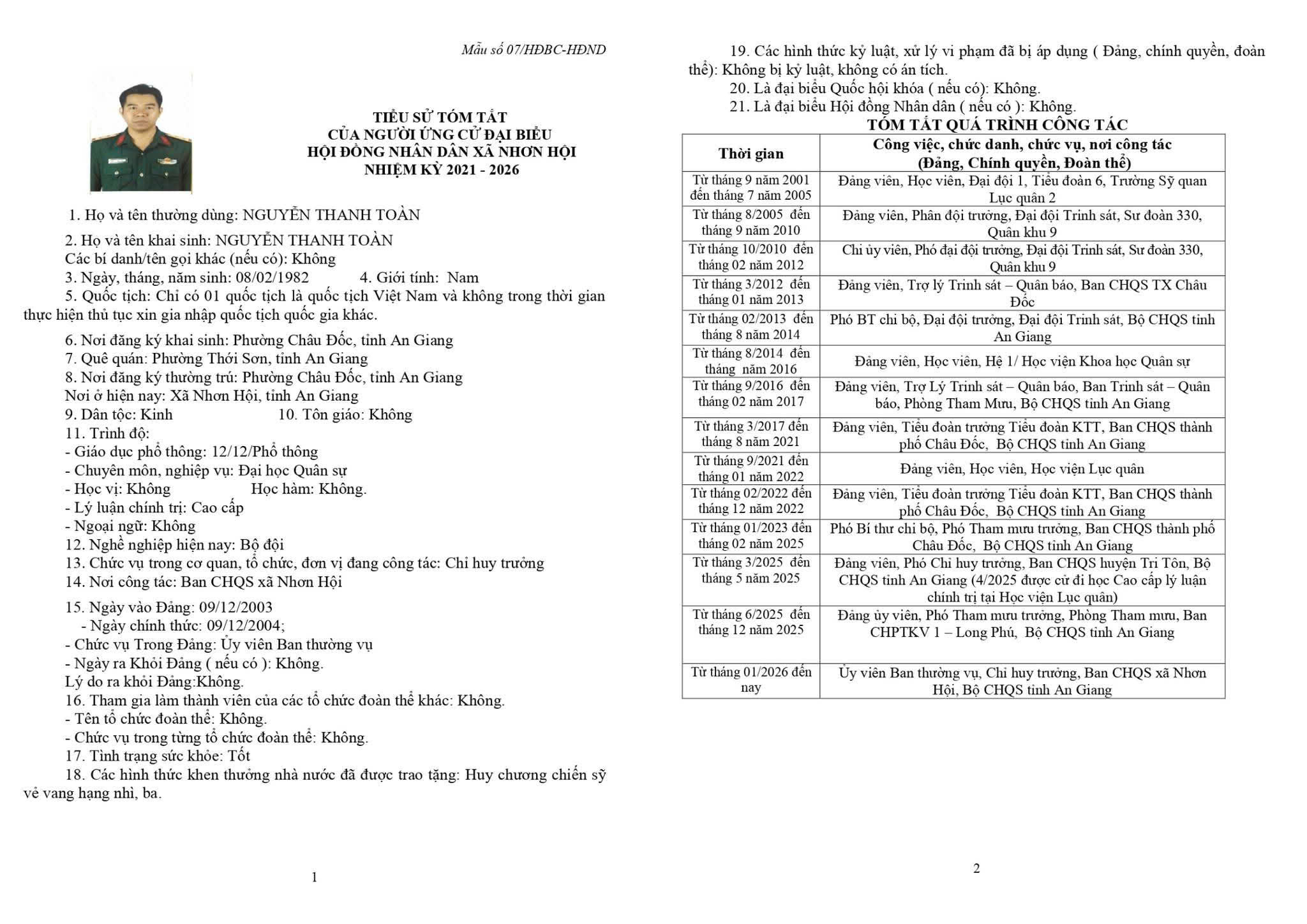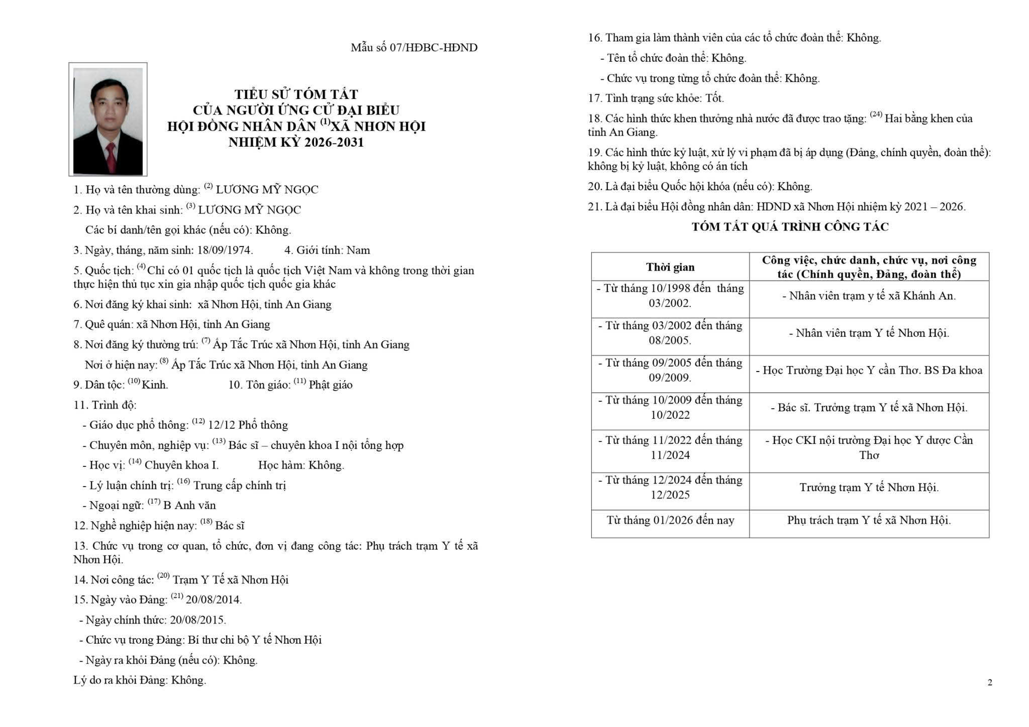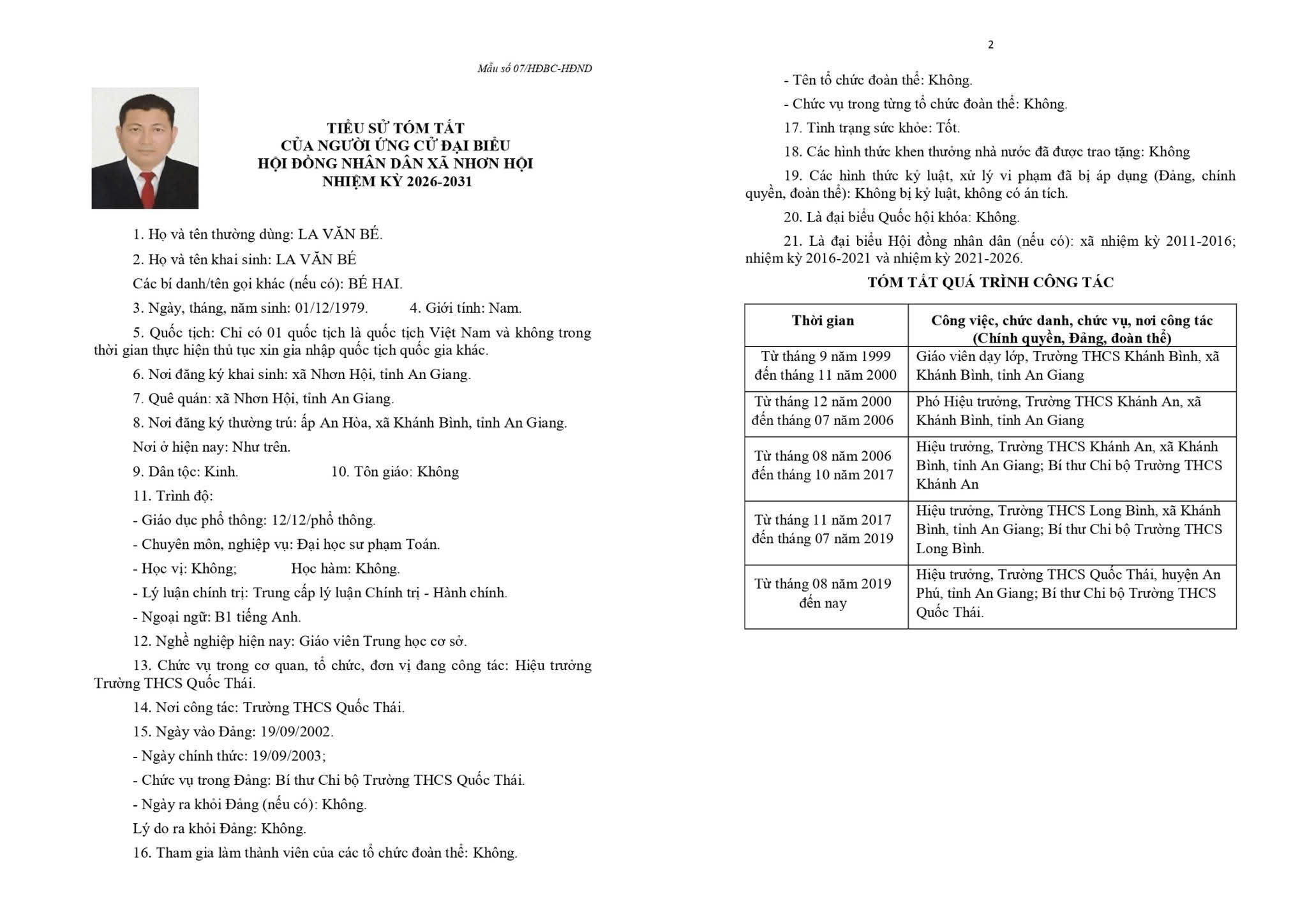 TIỂU SỬ TÓM TẮT CỦA NGƯỜI ỨNG CỬ ĐẠI BIỂU HỘI ĐỒNG NHÂN DÂN XÃ NHƠN HỘI NHIỆM KỲ 2026-2031 ĐƠN VỊ BẦU CỬ SỐ 6 GỒM: ẤP TẮC TRÚC