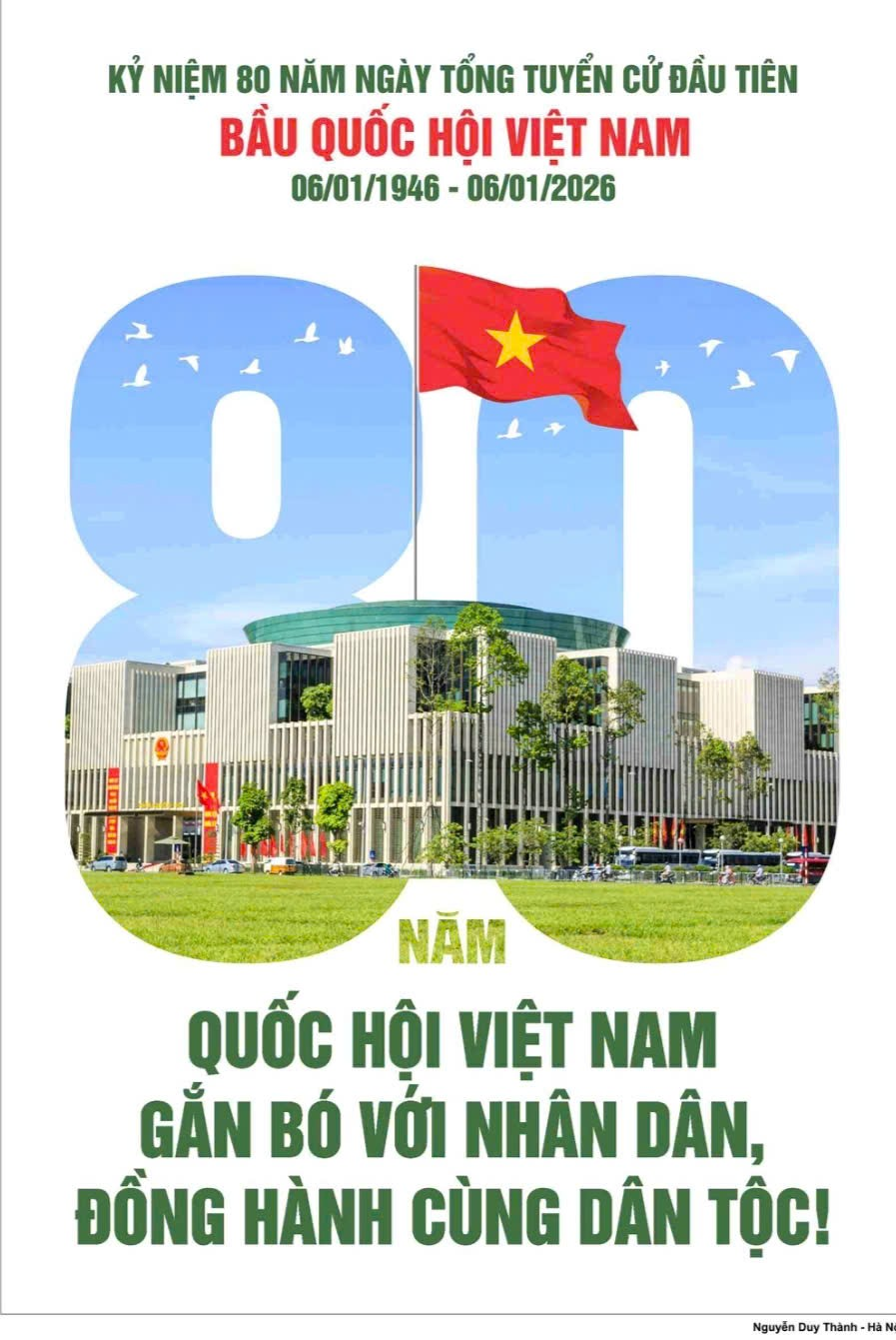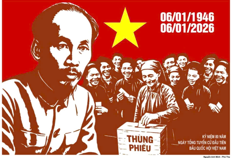 Tranh tuyên truyền cổ động trực quan kỷ niệm 80 năm Ngày Tổng tuyển cử đầu tiên bầu Quốc hội Việt Nam; bầu cử đại biểu Quốc hội khóa XVI và bầu cử HĐND các cấp nhiệm kỳ 2026 – 2031