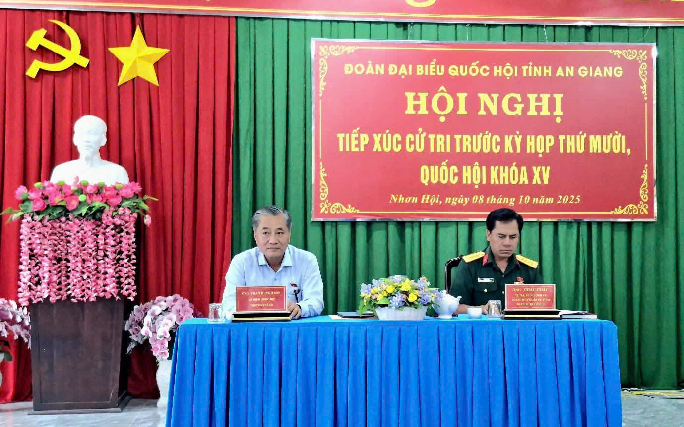 Đoàn Đại biểu Quốc hội tỉnh An Giang tiếp xúc cử tri xã Nhơn Hội trước Kỳ họp thứ 10, Quốc hội khóa XV 09/10/2025 Đoàn Đại biểu Quốc hội tỉnh An Giang tiếp xúc cử tri xã Nhơn Hội trước Kỳ họp thứ 10, Quốc hội khóa XV Read more