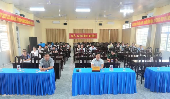 Tại điểm cầu xã Nhơn Hội, đồng chí Huỳnh Văn Thích, Phó Bí thư Thường trực Đảng ủy xã, chủ trì tham dự hội nghị.
